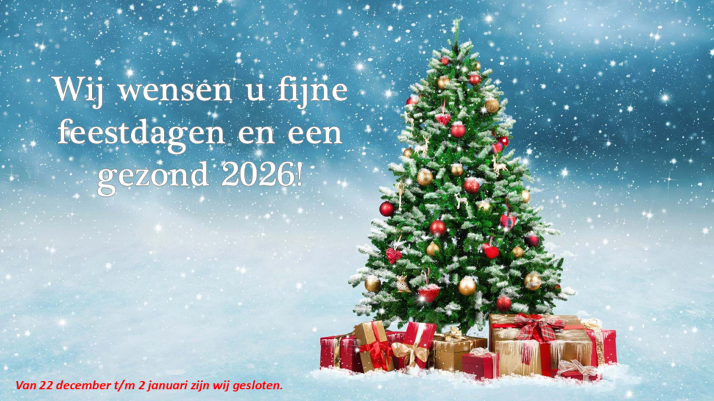 Wegens de feestdagen zijn wij van maandag 22 december tot en met vrijdag 2 januari gesloten. Vanaf maandag 5 januari zijn wij weer geopend.